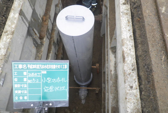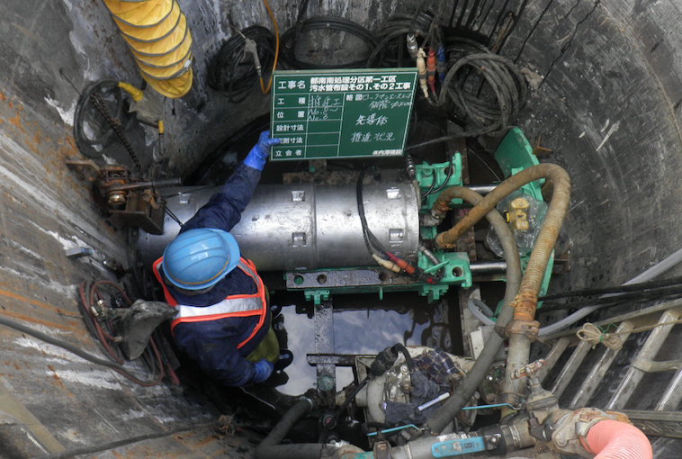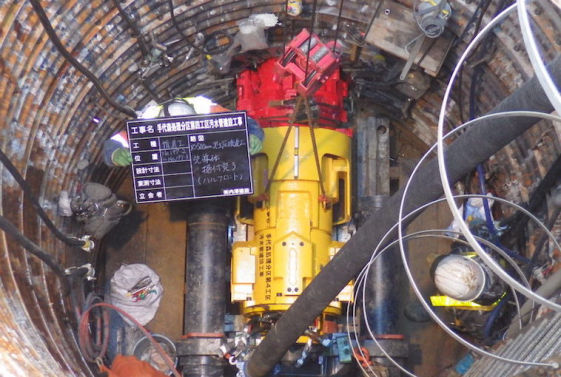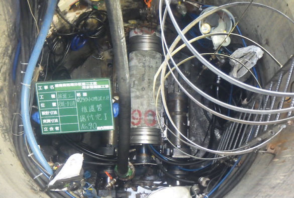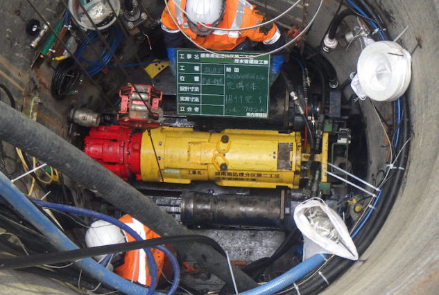 武道地域での下水道普及のための工事です。エースモール工法、垂直推進工による推進工事を行いました。