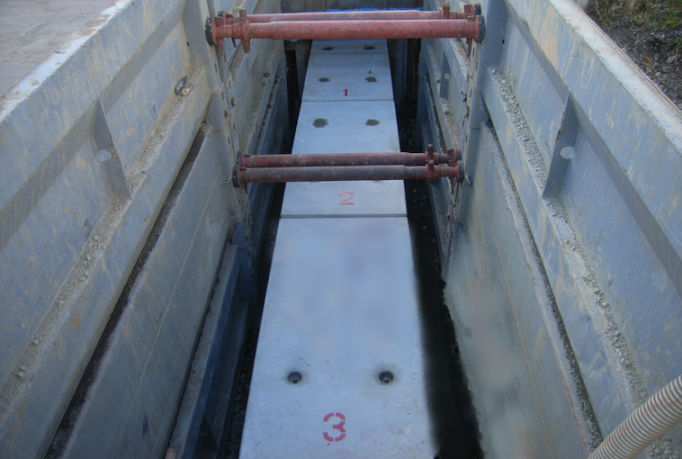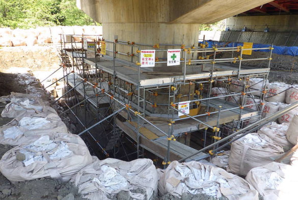 老朽化が進んだ為の架け替え工事が行われています。当社では、橋の基礎となるA2橋台工事を行いました。