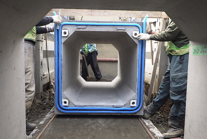 東安庭地域の合流管φ1100(雨水と汚水)の老朽化が進んでいた為、機能の維持・延命を目的とした工事です。ダンビー工法による管きょ更生工事を行いました。